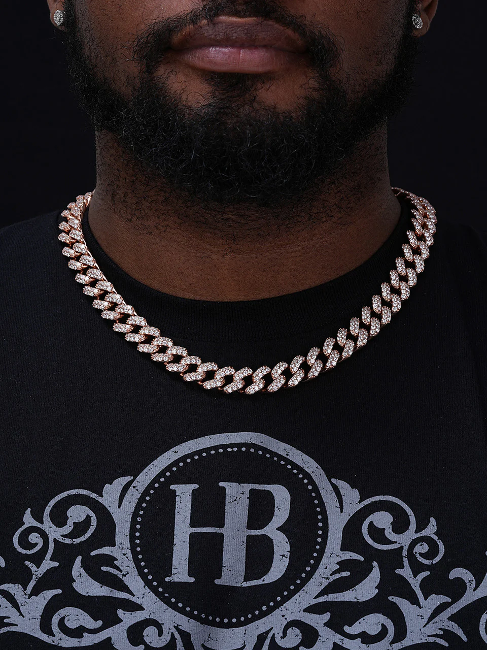 Classic Miami Cuban Link Chain Necklace Iced Out CZ Stones - 14k Gold Vermeil 925 Silver - 15mm - 18-36"