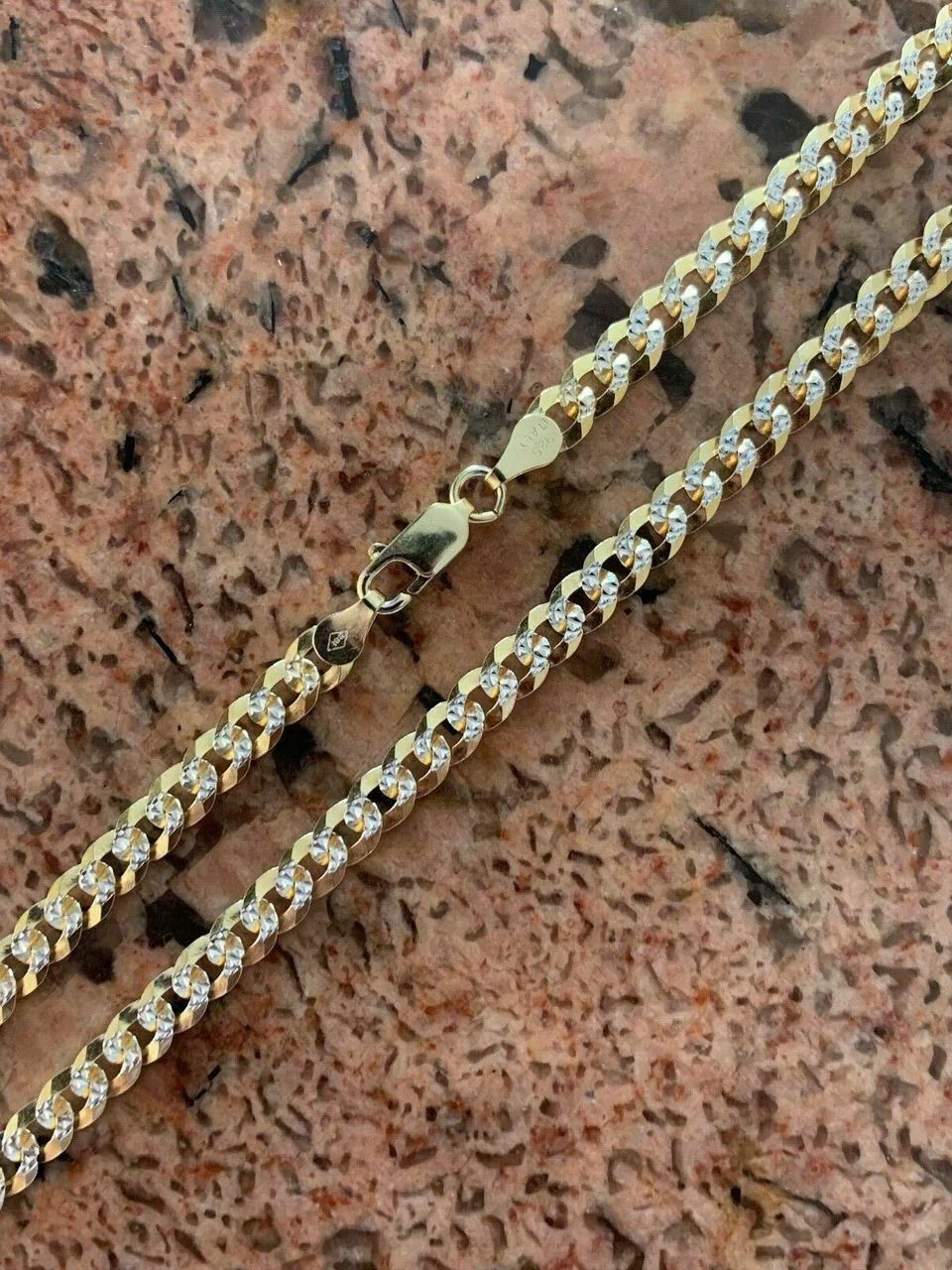 Men's Diamond Cut 5mm Cuban Chain 14k Gold Over Solid 925 Silver Two Tone ITALY