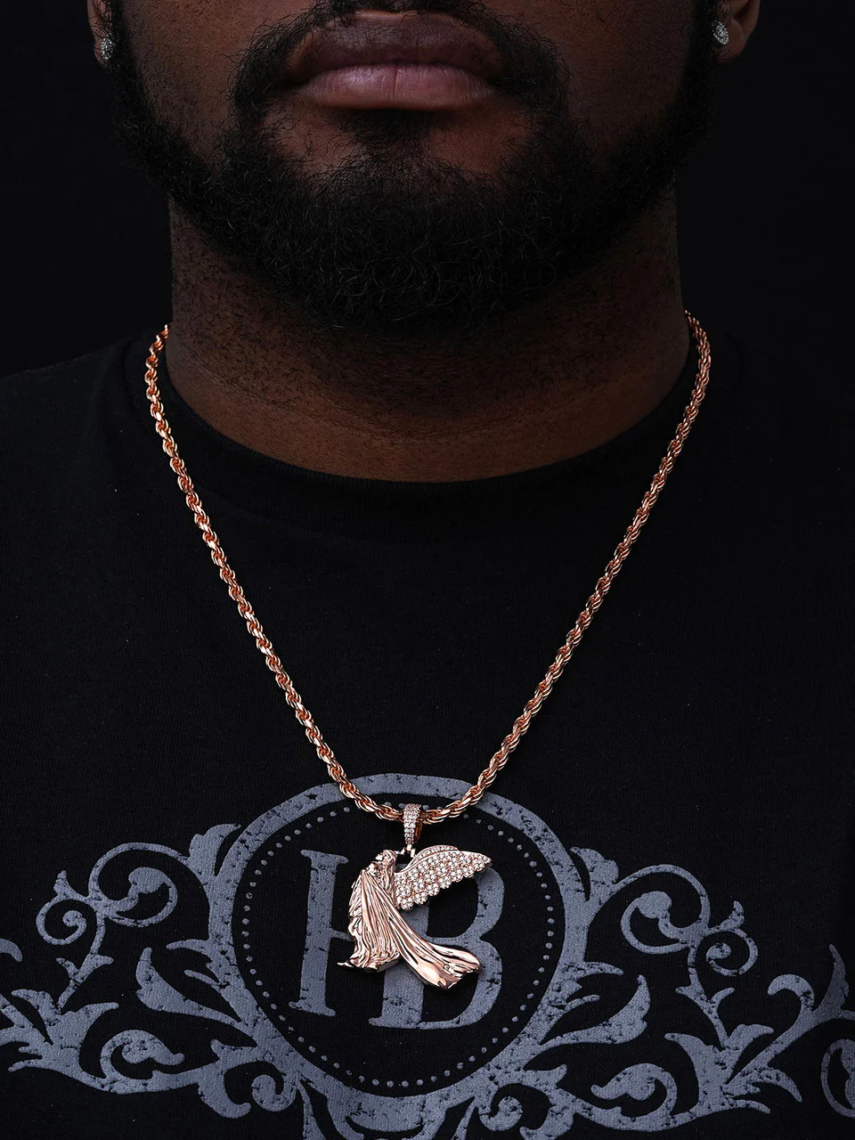 Gorgeous guardian angel pendant finished with moissanite stones